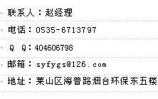 聯(lián)系人:趙經(jīng)理 電話(huà):0535-6713797 傳真:0535-6713797